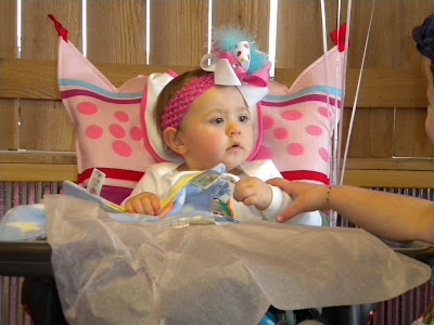 Once Carter woke up he was ready to play. He was smiling at everyone and so glad to get out of that car seat! We were just standing there talking to everyone and all of a sudden we hear the "bucking bronco music". It's the same song that we hum whenever we are bucking Carter on our knee. Carter's little head turned around so fast when he heard it so we had to go over and check it out. It was one of those bucking horses that go whenever you put a quarter in. We put him on it and he went to town. He was kicking his legs and it looked like he was spurring it trying to make it go faster. It was the cutest thing and everyone enjoyed watching him. I think he rode it about 6 times and would have rode it all day if we let him. Nick was there in case he fell but he rode it all by himself.
